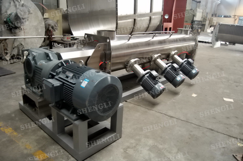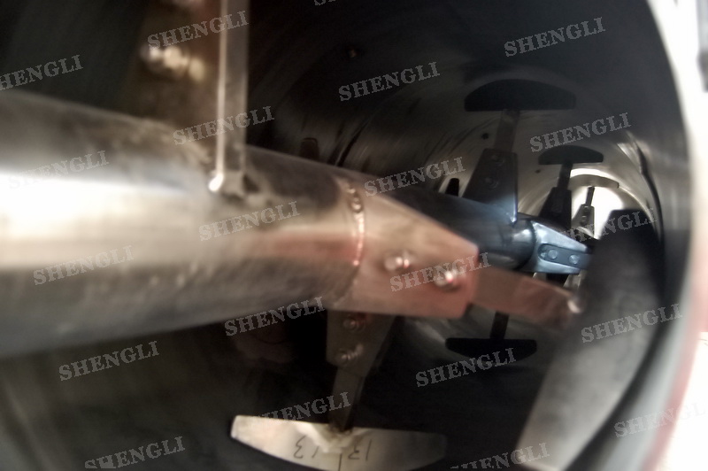 描述:單軸連續式攪拌機臥式安裝,進行連續式生產模式,推進槳葉配合高速飛刀有效打散、混合物料。設備主軸、飛刀主軸采用氣密封,杜絕粉料泄露。設備配置液體噴頭,可霧化加液。