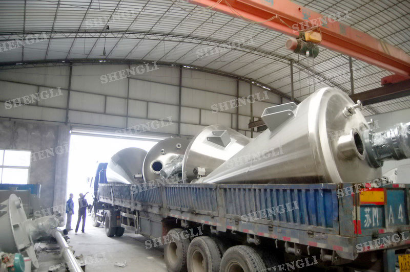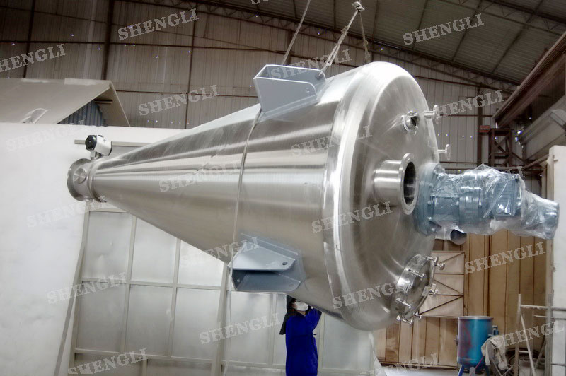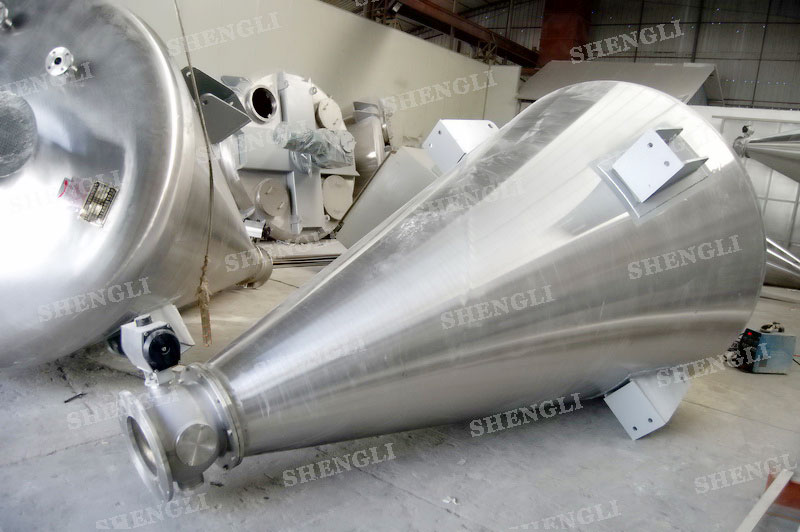描述:錐形雙螺旋混合機內部安裝非對稱傾斜螺旋,雙螺旋自身旋轉,提升物料,并有公轉減速箱驅動,沿錐體中心軸公轉,360度攪拌物料,擁有非破壞性攪拌以及快速且無殘留卸料的特點。該設備采用上蓋一體式,選用耐壓橢圓封頭結構、配置氣動球面閥,錐形中心軸噴液,內表面做鏡面處理、外表面亞光處理,架設人孔、觀察口、排氣口等設置。
