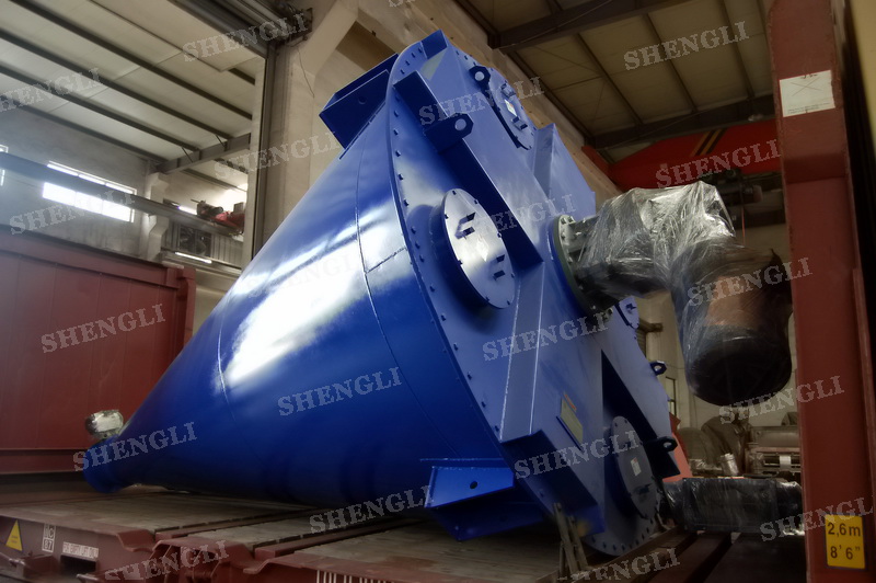 描述:雙螺旋攪拌機內部安裝非對稱傾斜螺旋,雙螺旋自身旋轉,提升物料,并有公轉減速箱驅動,沿錐體中心軸公轉,360度攪拌物料,擁有非破壞性攪拌以及快速且無殘留卸料的特點。該設備配置自轉、公轉一體式驅動,內設中心軸線噴液噴頭,筒體出料口配置球面閥。