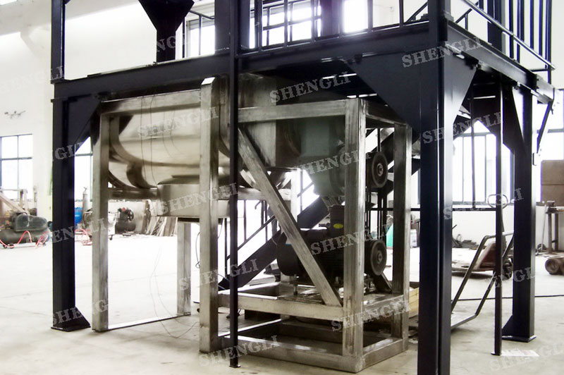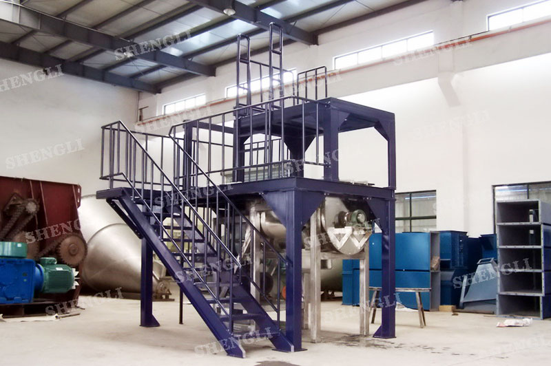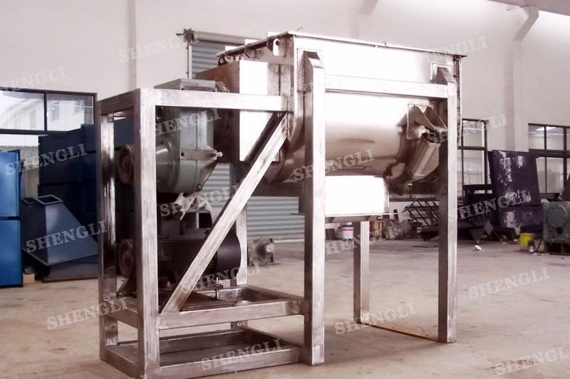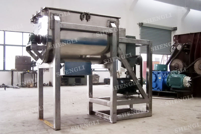 工作原理:槳葉混合機采用U型筒體,內(nèi)設(shè)平行主軸,主軸上安裝若干傾角式槳葉刀,不僅能快速高效的攪拌物料,且不會破壞物料,不會卡料。