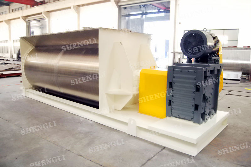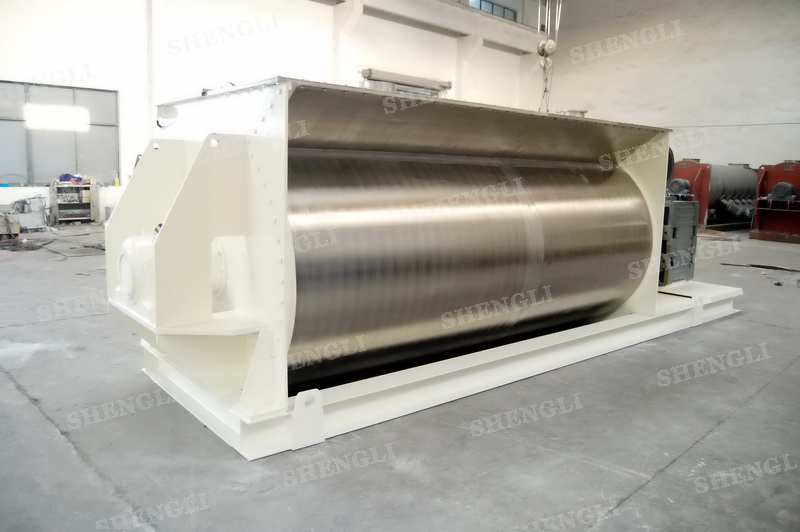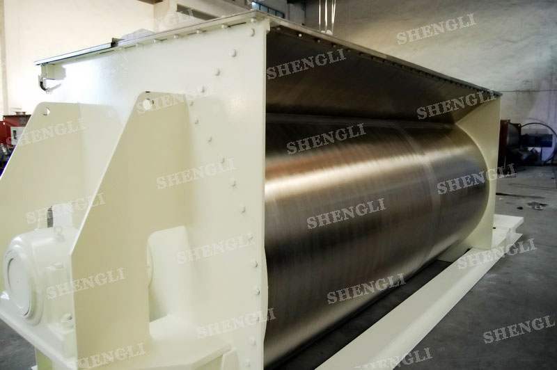 工作原理:臥式攪拌機采用U型筒體,內設平行主軸,主軸上安裝若干傾角式槳葉刀,不僅能快速高效的攪拌物料,且不會破壞物料,不會卡料。