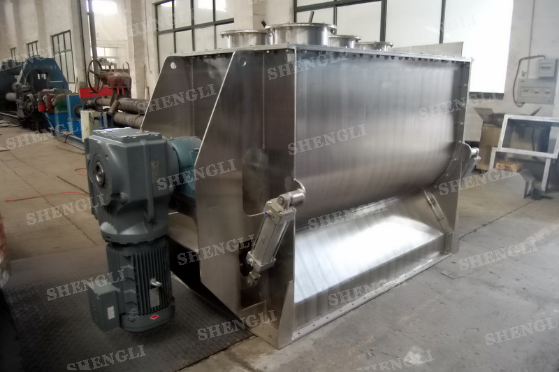 工作原理:螺帶混合機(jī)采用U型筒體,內(nèi)裝平行主軸,主軸上安裝正反雙向的盤條螺帶,不同維度螺帶分內(nèi)螺帶與外螺帶,物料在螺帶的驅(qū)使下反復(fù)參混,能夠快速高效的混合。