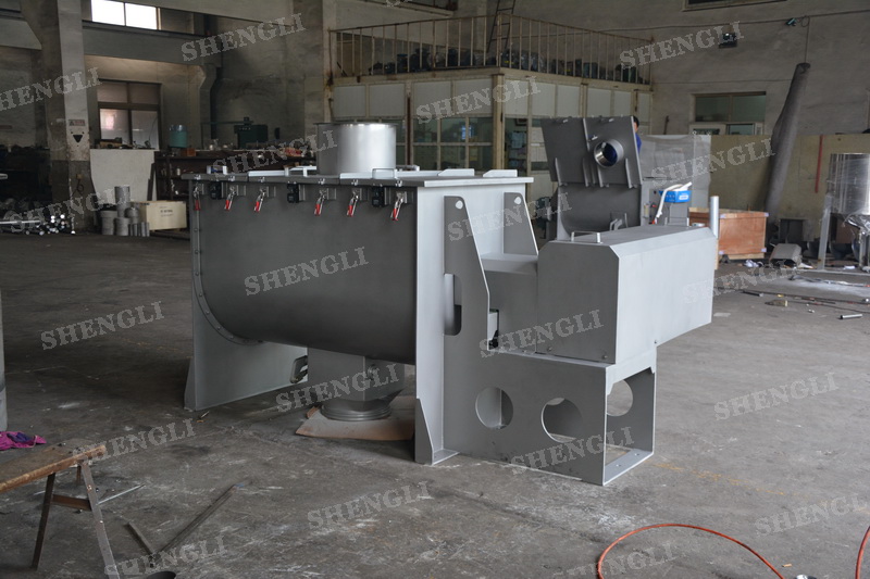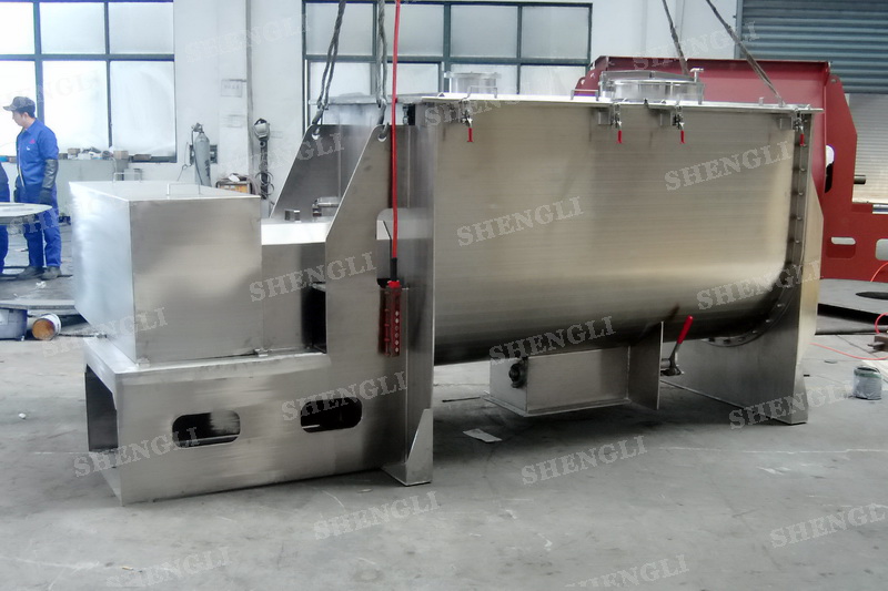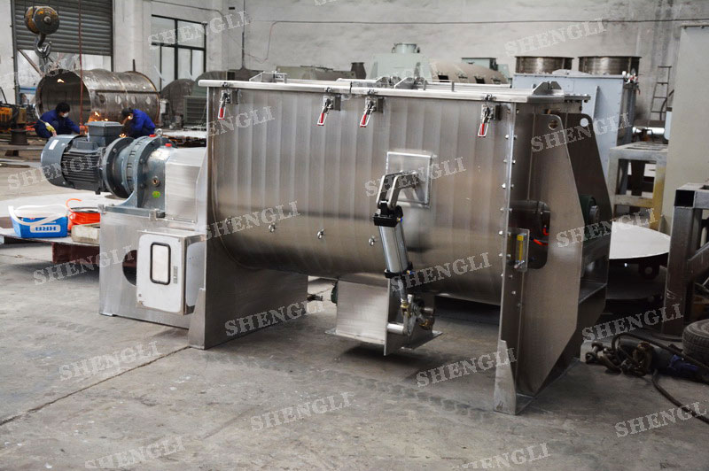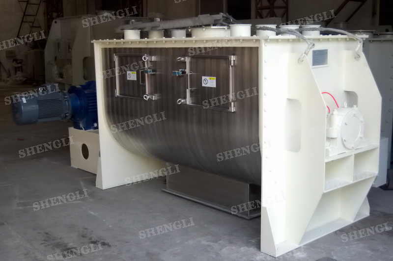 工作原理:螺帶混合機采用U型筒體,內(nèi)裝平行主軸,主軸上安裝正反雙向的盤條螺帶,不同維度螺帶分內(nèi)螺帶與外螺帶,物料在螺帶的驅(qū)使下反復(fù)參混,能夠快速高效的混合。