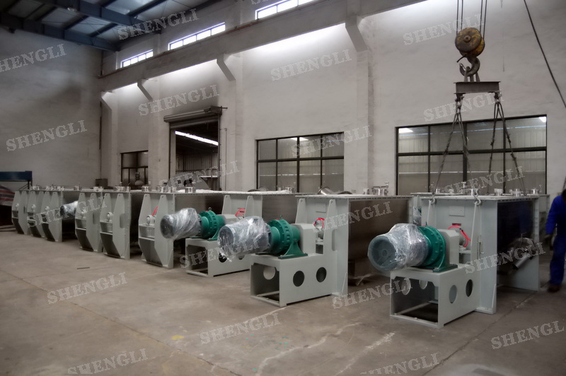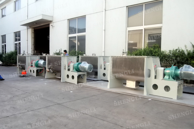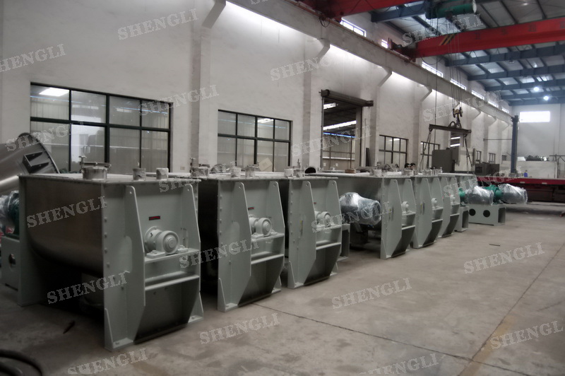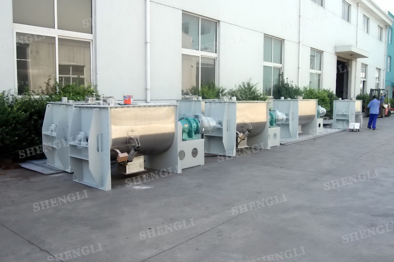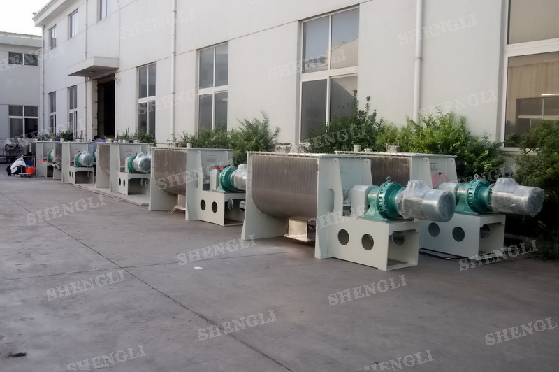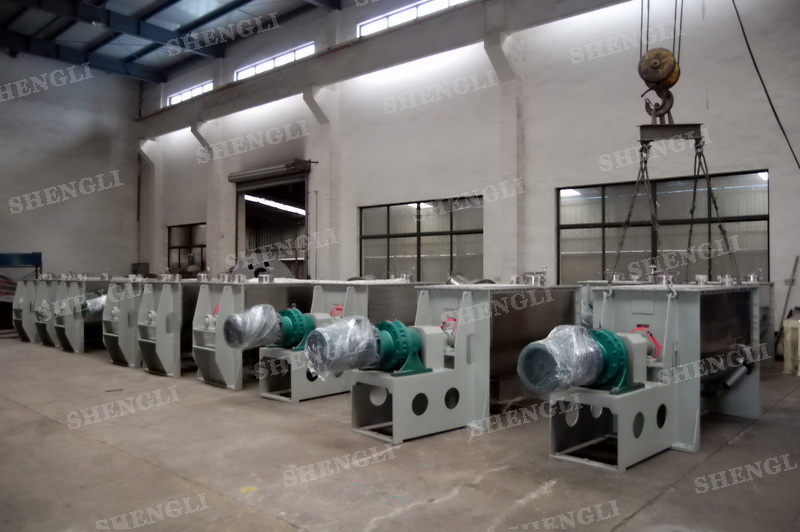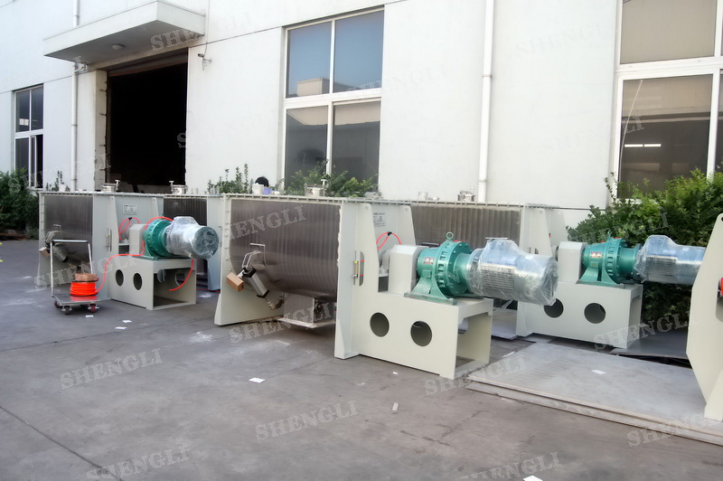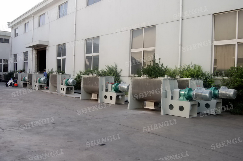 工作原理:螺帶混合機采用U型筒體,內裝平行主軸,主軸上安裝正反雙向的盤條螺帶,不同維度螺帶分內螺帶與外螺帶,物料在螺帶的驅使下反復參混,能夠快速高效的混合。