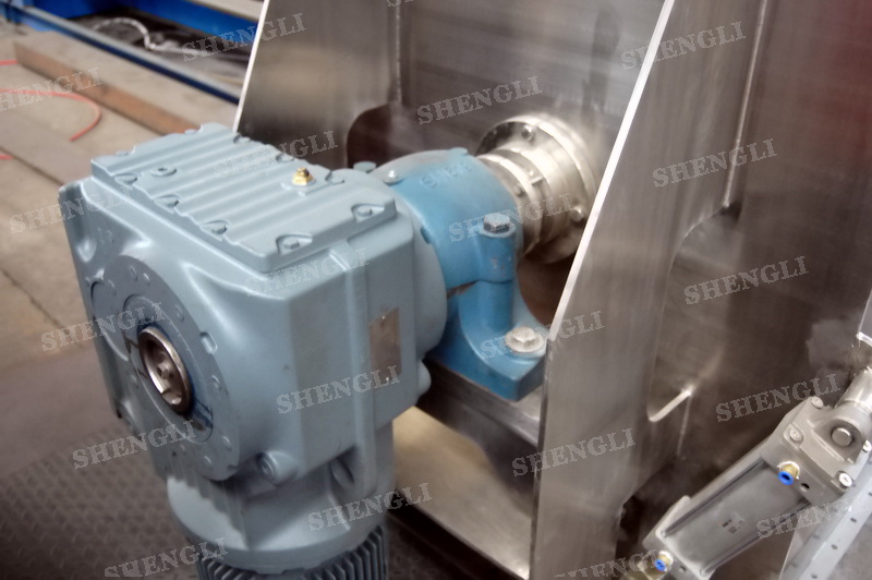 設備配置:配置K系列減速機、直角安裝;桶蓋標準法蘭式開口;出料閥采用氣動翻板閥;設備主軸采用填料密封;設備內、外表面拉絲拋光。