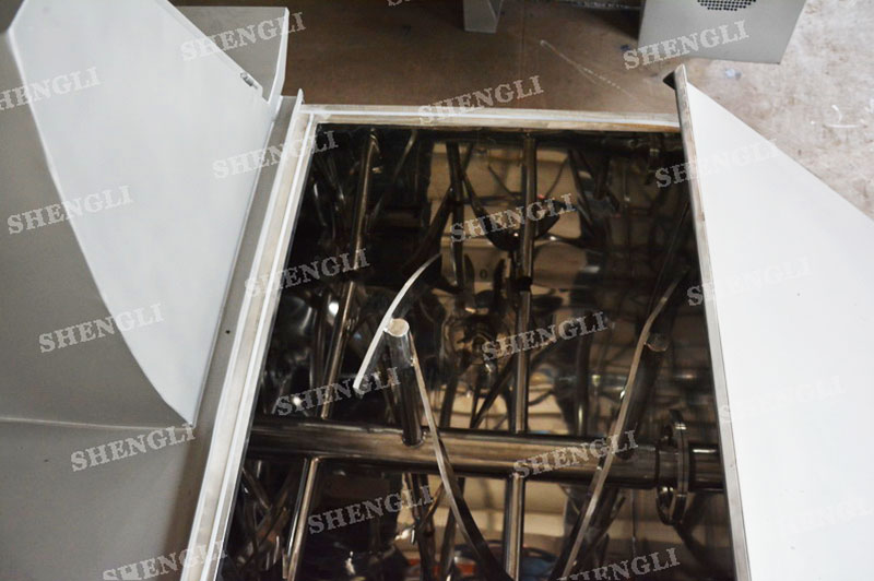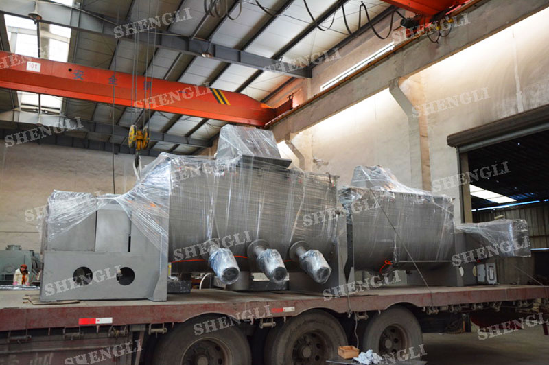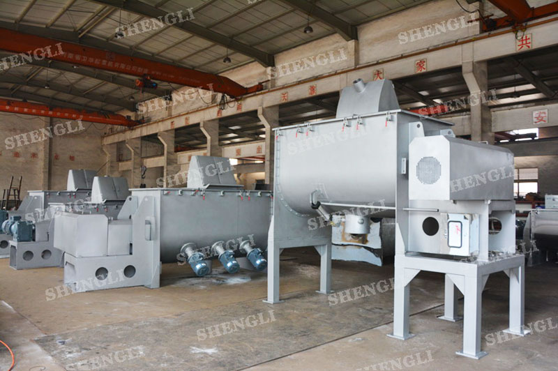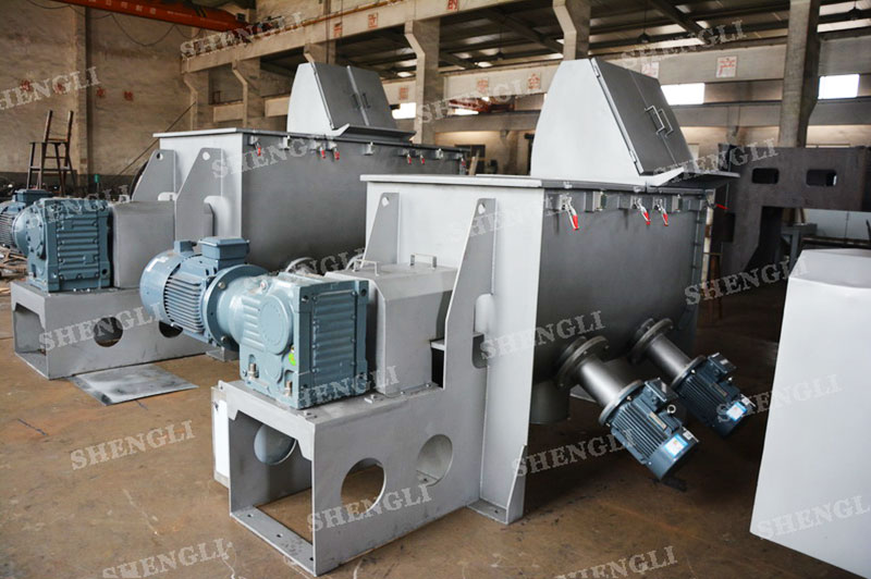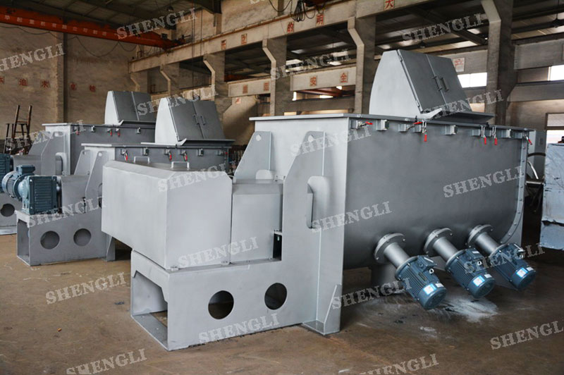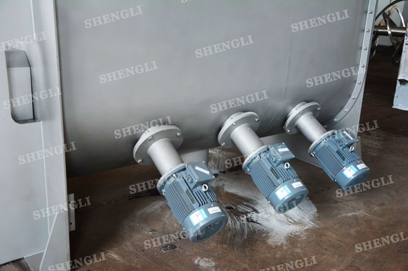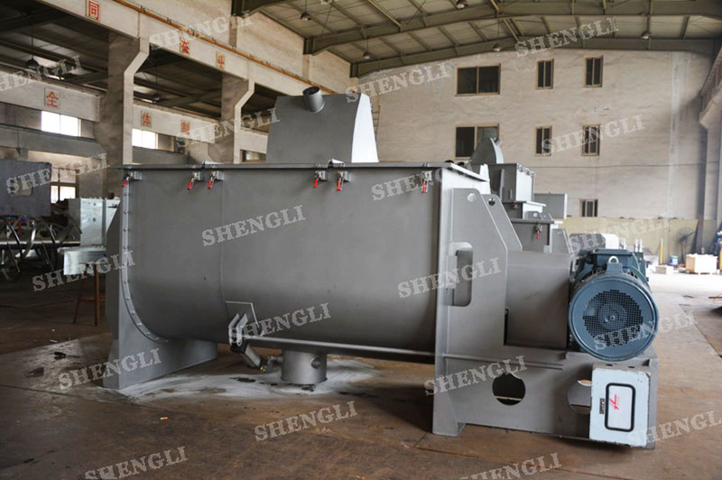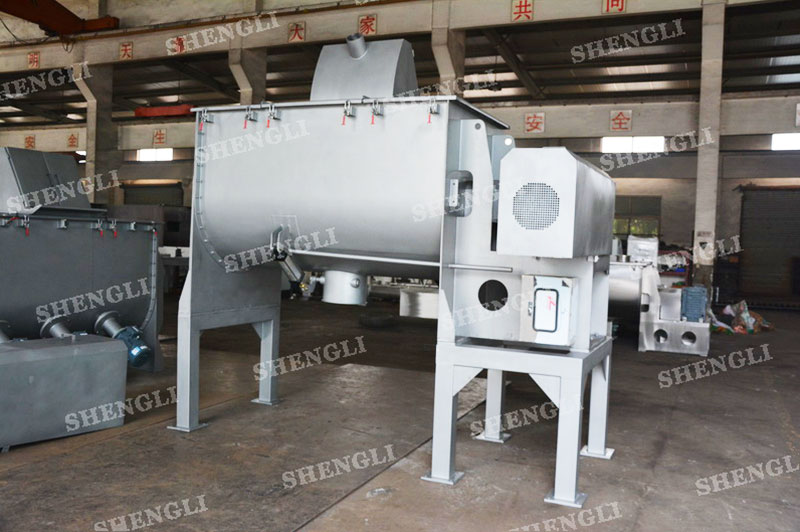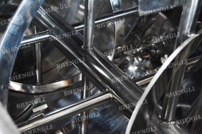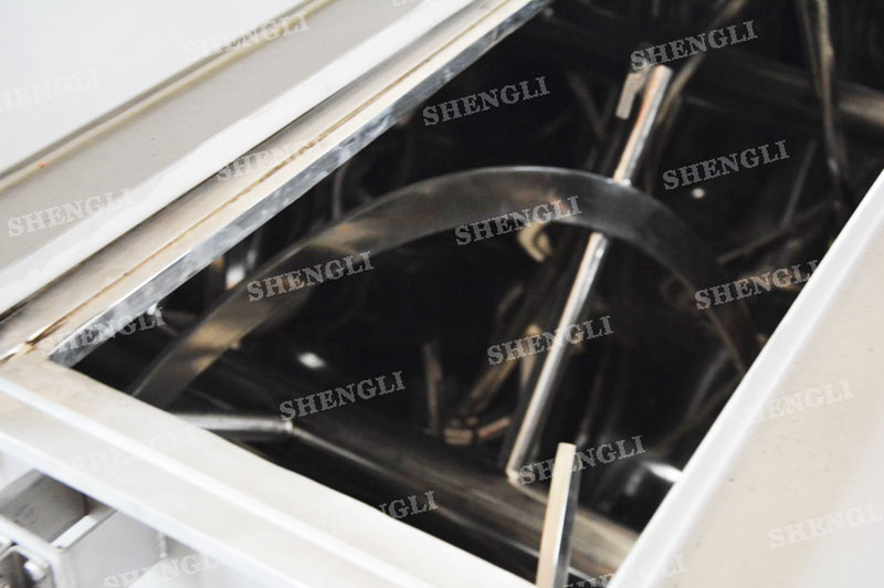工作原理:螺帶臥式混合機采用U型筒體,內裝平行主軸,主軸上安裝正反雙向的盤條螺帶,不同維度螺帶分內螺帶與外螺帶,物料在螺帶的驅使下反復參混,能夠快速高效的混合。