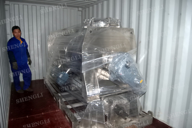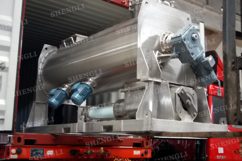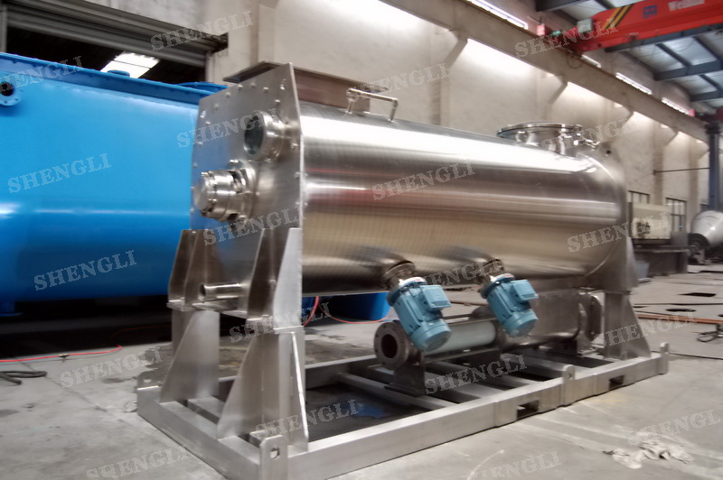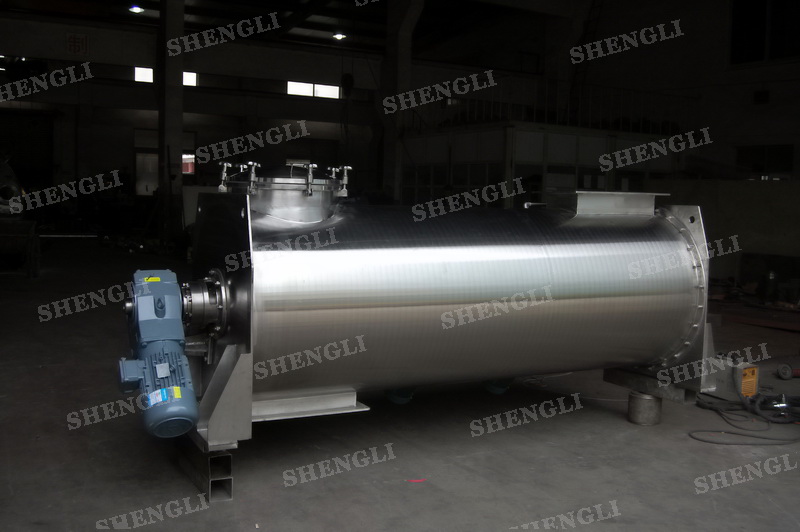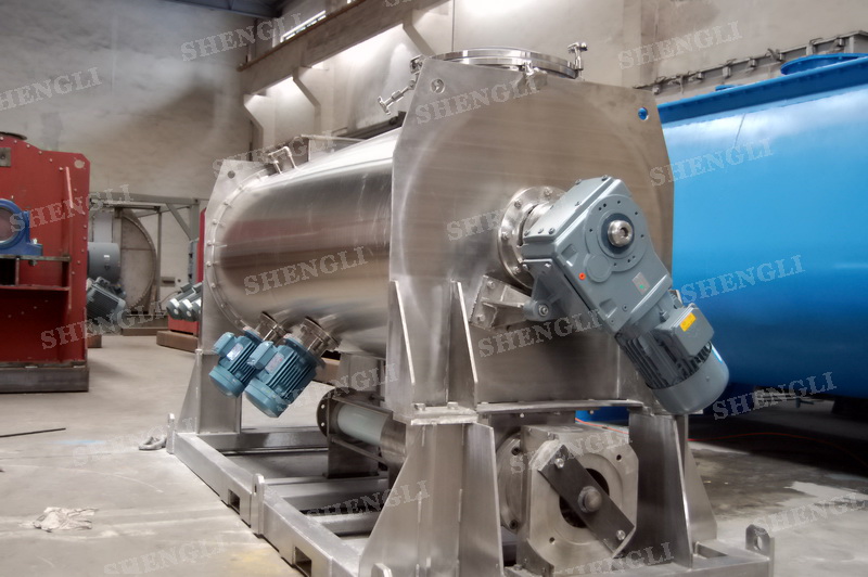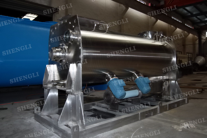 工作原理:螺帶攪拌設備采用U型筒體,內裝平行主軸,主軸上安裝正反雙向的盤條螺帶,不同維度螺帶分內螺帶與外螺帶,物料在螺帶的驅使下反復參混,能夠快速高效的混合。