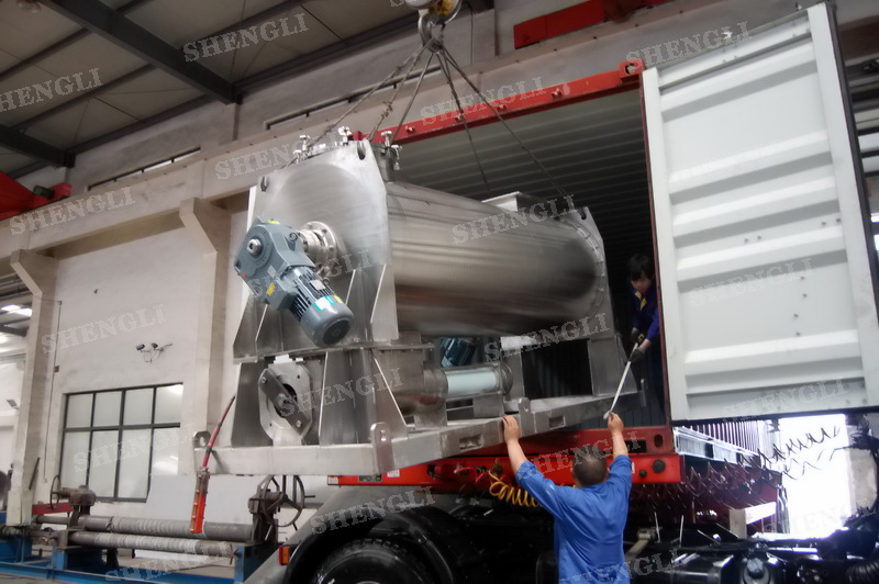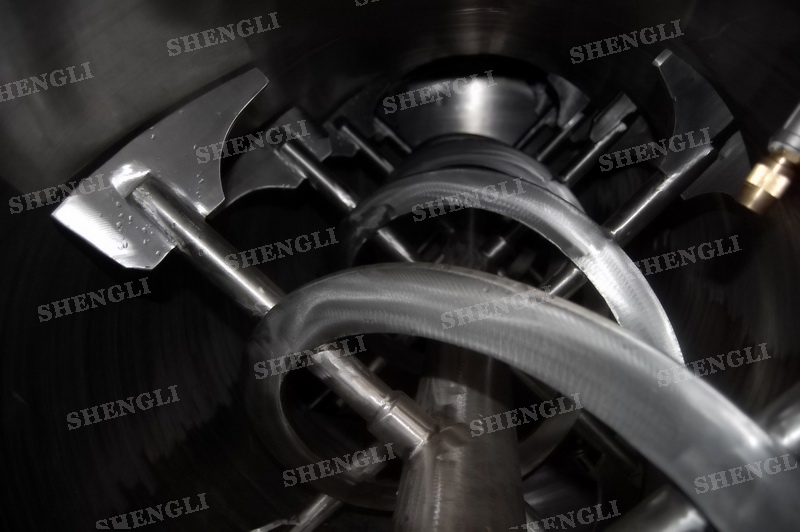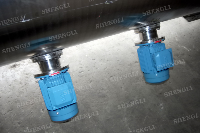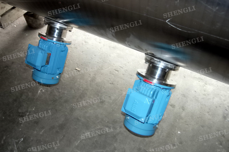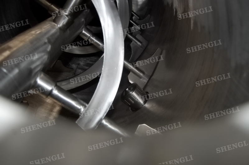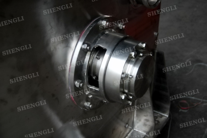 設備配置:配置K系列減速機、垂直安裝;設備采用圓形筒體;筒側加裝高速飛刀;設備主軸與飛刀主軸采用機械密封;設備內外表面拉絲拋光。