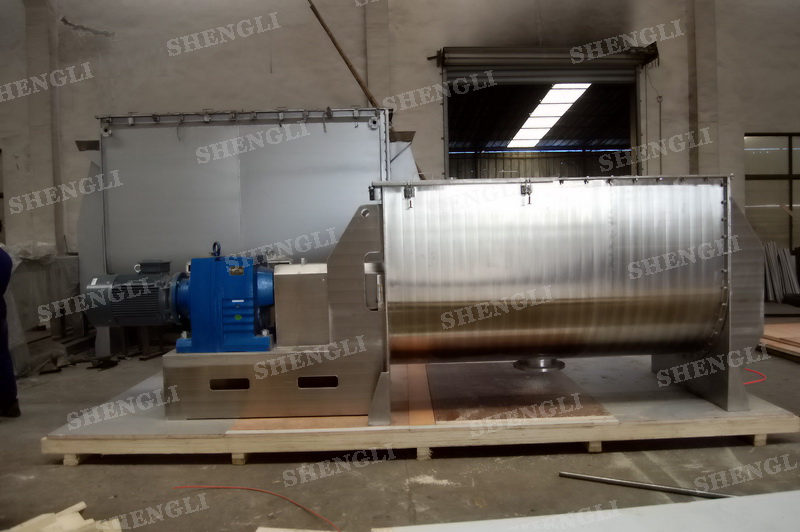 工作原理:螺帶混合機采用U型筒體,內(nèi)裝平行主軸,主軸上安裝正反雙向的盤條螺帶,不同維度螺帶分內(nèi)螺帶與外螺帶,物料在螺帶的驅(qū)使下反復(fù)參混,能夠快速高效的混合。