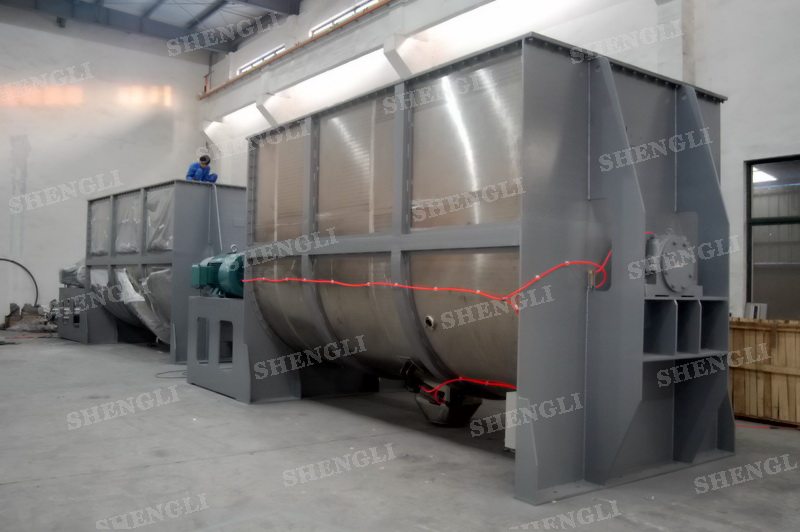 工作原理:螺帶混合設備采用U型筒體,內裝平行主軸,主軸上安裝正反雙向的盤條螺帶,不同維度螺帶分內螺帶與外螺帶,物料在螺帶的驅使下反復參混,能夠快速高效的混合。