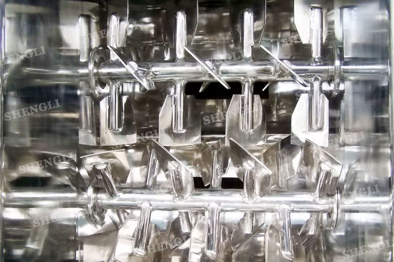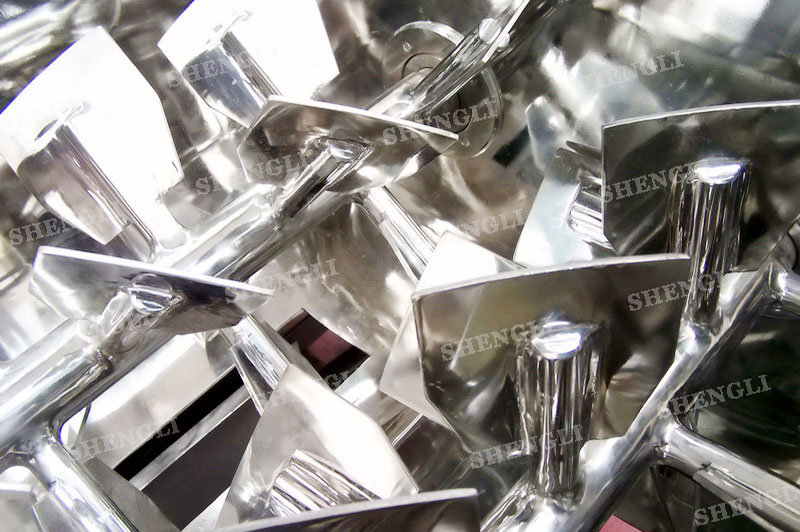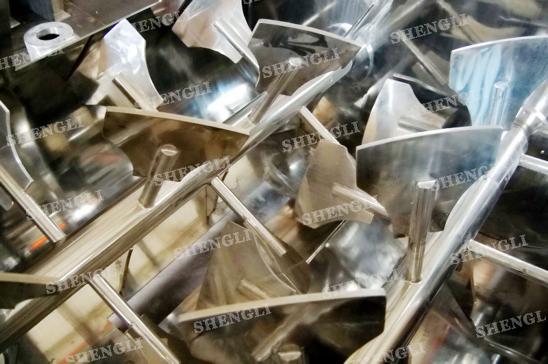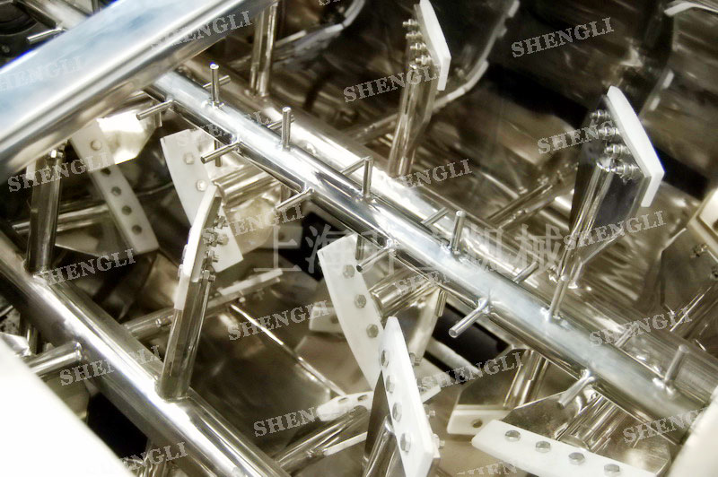工作原理:無重力混合機采用雙U型筒體,內裝平行的雙主軸,主軸設有對稱的多組槳葉,其雙軸的運行軌跡部分重合形成嚙合空間,雙軸在受雙電機同步驅動,同步的對稱向外翻攪物料,致使物料能夠達到瞬間失重點,該設備具備高效物料無差別的混合能力。