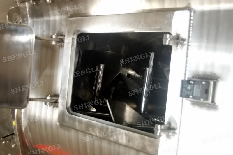工作原理:無重力攪拌機采用雙U型筒體,內裝平行的雙主軸,主軸設有對稱的多組槳葉,其雙軸的運行軌跡部分重合形成嚙合空間,雙軸在受雙電機同步驅動,同步的對稱向外翻攪物料,致使物料能夠達到瞬間失重點,該設備具備高效物料無差別的混合能力。